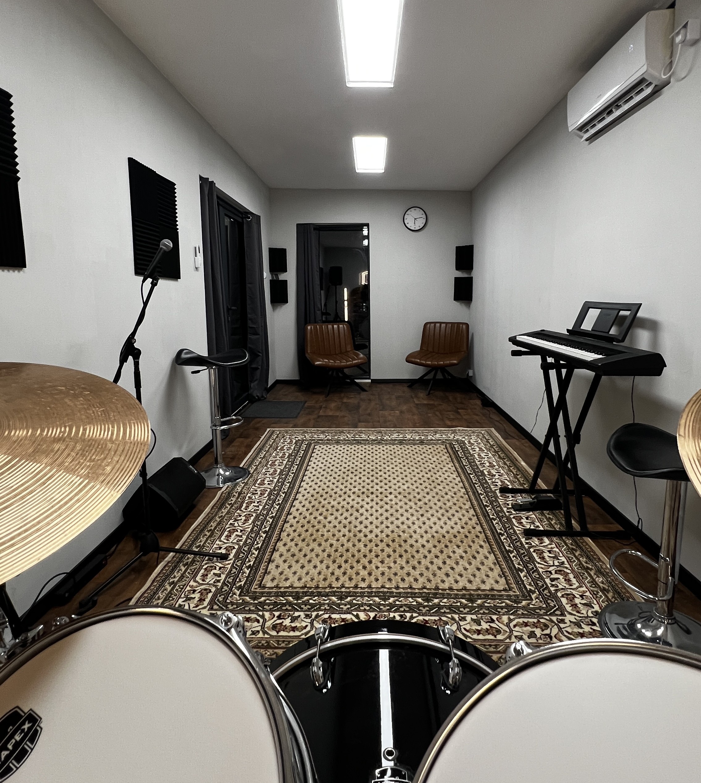 Wir bieten einen 20 qm großen und voll ausgestatteten Proberaum im Riedingerpark Augsburg zur flexiblen Nutzung an. Ideal für spontane Solo- oder Bandproben. Es handelt sich dabei um ein neuartiges Projekt aus einem Raummodul. Einfach mal ausprobieren!