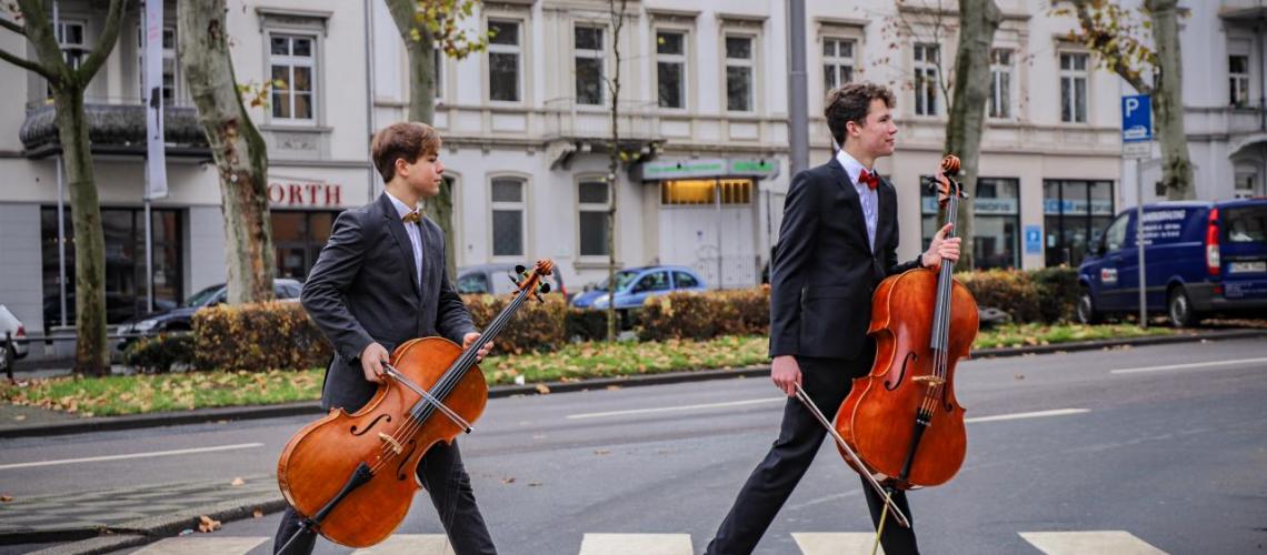 2018 gegründet, haben sich Leo Stoll und Elias Hauth unter dem Namen „Das CelloDuo“ in Wiesbaden und über die Stadtgrenzen hinaus schnell einen Namen gemacht und begeistern ihr Publikum mit vielseitigen Programmen, großer Spielfreude und untschiedlichen Konzertformaten. Die beiden Teenager fingen vor einigen Jahren als Schüler der Wiesbadener Musik- und Kunstschule an, neben dem klassischen Repertoire Rock- und Popstücke auf dem Cello zu spielen. Was mit kleinen Auftritten im privaten Rahmen begann, führte die jungen Cellisten bald auf größere Bühnen wie das Wiesbadener Kurhaus oder die Wiesbadener Marktkirche. Inspiriert von ihren Vorbildern Luka Sulic und Stjepan Hauser – besser bekannt als die gefeierten 2Cellos – reicht das Repertoire des CelloDuos von virtuosen Rock-Covern und sanften Pop-Balladen der 2Cellos bis hin zu Klassik und Eigenarrangements. Gerne experimentieren die beiden dabei mit unterschiedlichsten Gruppierungen von Bands bis zu klassischen Orchestern. Das CelloDuo wurde 2019 mit dem zweiten Platz des Leonardo-Awards der Wiesbaden Stiftung ausgezeichnet.