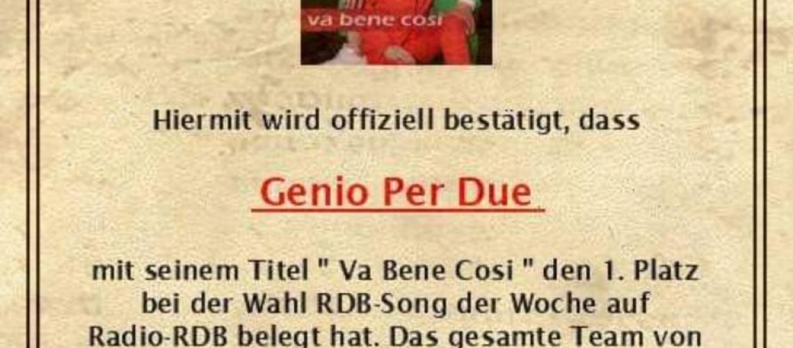 letztes Jahr unsere Songs „VA BENE COSI“,  ,,NOI“  und „DOVE SEI“. Alle Songs erhielten eine Klassifizierung auf der internationalen Hitliste.