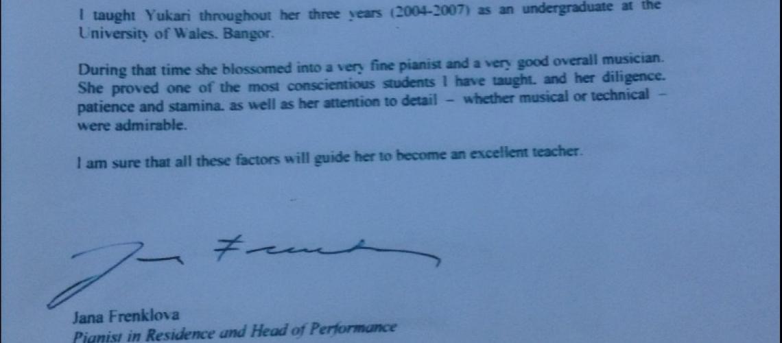 Klavierstudium bei Prof. Jana Frenklova (eine Professionelle tschechische Pianistin/ Head of Performance) an der University of Wales, Großbritannien.