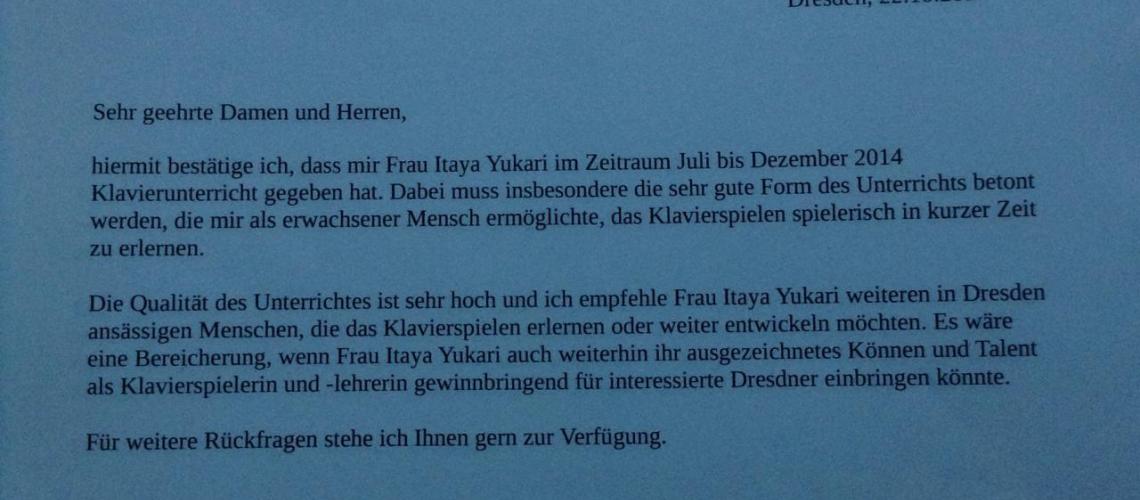 Ich bin derzeit auch als Klavierlehrerin an 2 Musikschulen in Dresden tätig.